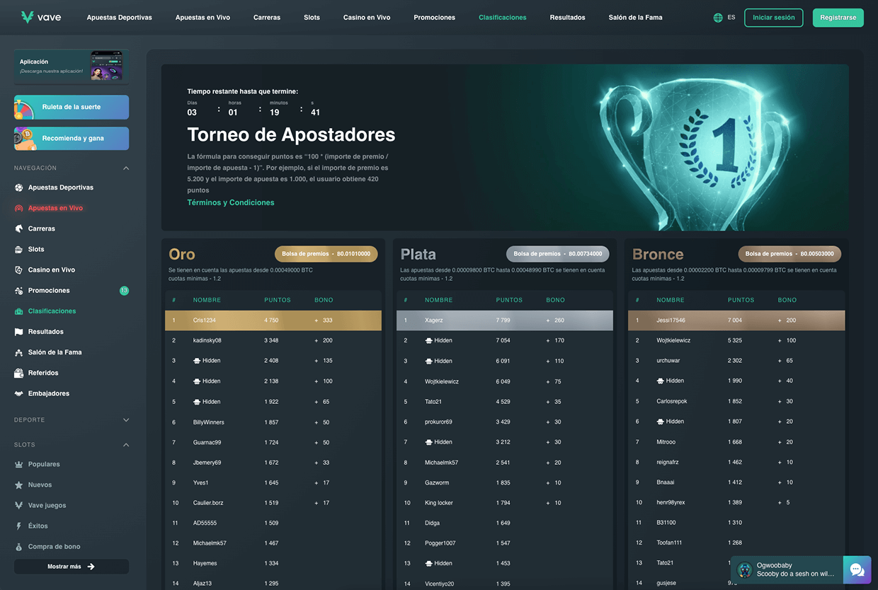 En VaveCasino llevamos la experiencia de juego al siguiente nivel con torneos pensados para premiar tanto tu constancia como tu estrategia. Ya sea que participes en una competencia de slots o en un reto de clasificación en apuestas deportivas, cada jugada te acerca más al bote acumulado y a los primeros puestos del ranking.