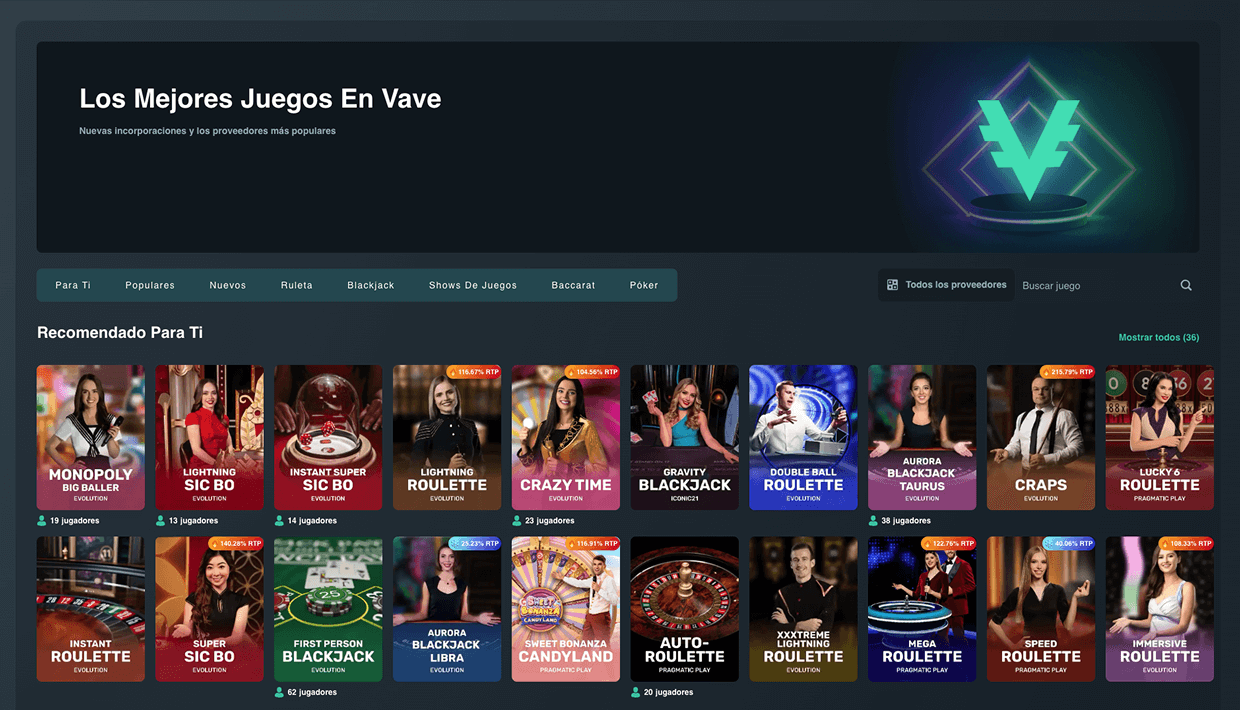 En VaveCasino España no nos limitamos a las slots. También ofrecemos una selección completa de juegos de mesa y en vivo, ideales para quienes buscan la emoción de los clásicos con crupieres reales y partidas en directo.